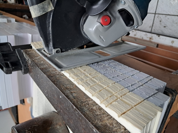Το εργαστήριο μας όμως, έχει μία άλλη μέθοδο, με πολλές χαρακιές με ειδικό μηχάνημα βάθους 5 χιλ. ακριβώς, τοποθετούμε το βιβλίο σε όρθια θέση και βάζουμε μπόλικη κόλλα η οποία μπαίνει όσο το δυνατόν πιο βαθιά στις οπές, πλην όμως όχι περισσότερο για να μπορεί να ανοίγει επαρκώς. Η διαδικασία προφανώς και είναι κάπως πιο χρονοβόρα, αλλά είναι απαραίτητη, ειδικά αν σκεφτεί κανείς ότι τα σύγχρονα χαρτιά που χρησιμοποιούνται στην ψηφιακή εκτύπωση και ειδικά στα φωτοαντίγραφα, περιέχουν χημικά τα οποία βοηθούν το τόνερ (είδος ξηράς μελάνης) να κολλήσει επάνω τους, πλην όμως αυτά τα χημικά δεν επιτρέπουν να “πιάσει” όπως θα λέγαμε η κόλα.